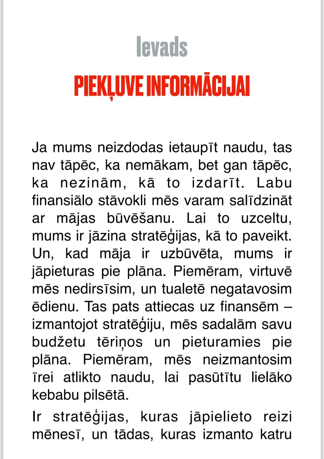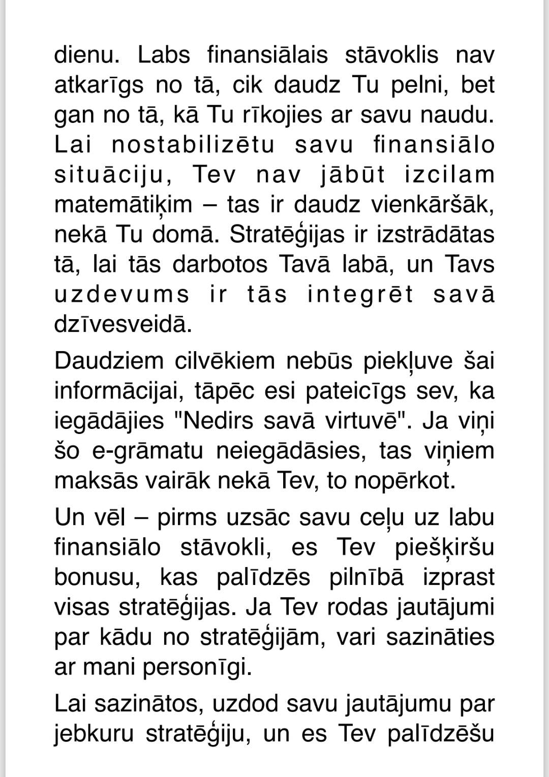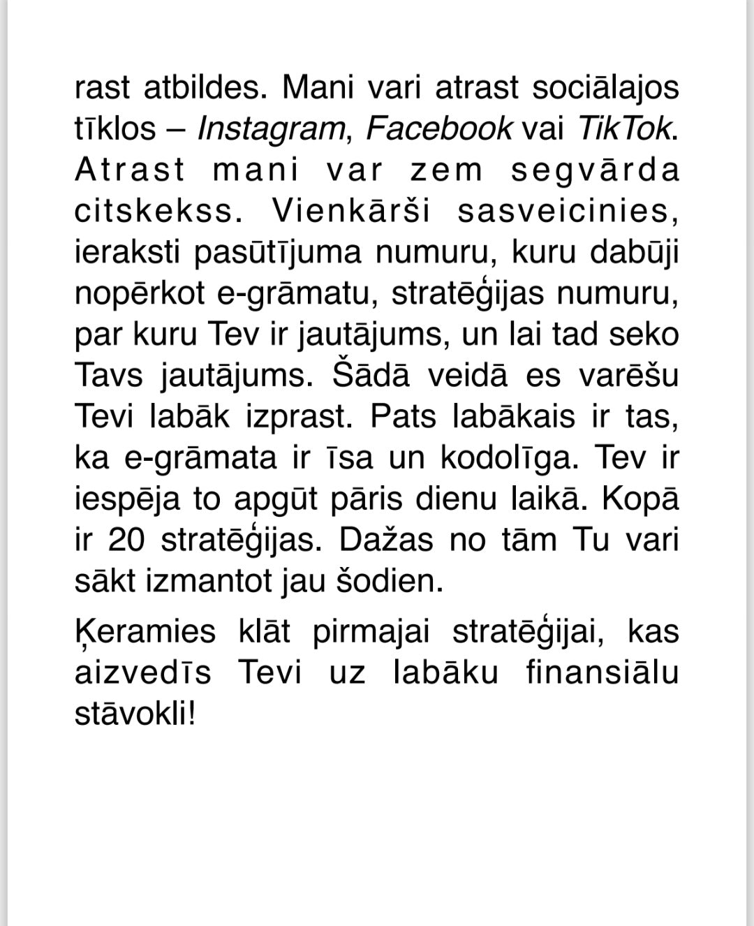 Šai e-grāmatai nav fiziska svara, bet tai ir īsta vērtība. Tā vienmēr būs tavā telefonā - pieejama jebkurā brīdī. Tavs izvēles brīdis: vai turpināsi līst pa akmeņainu granti - vai sāksi braukt pa asfaltu?